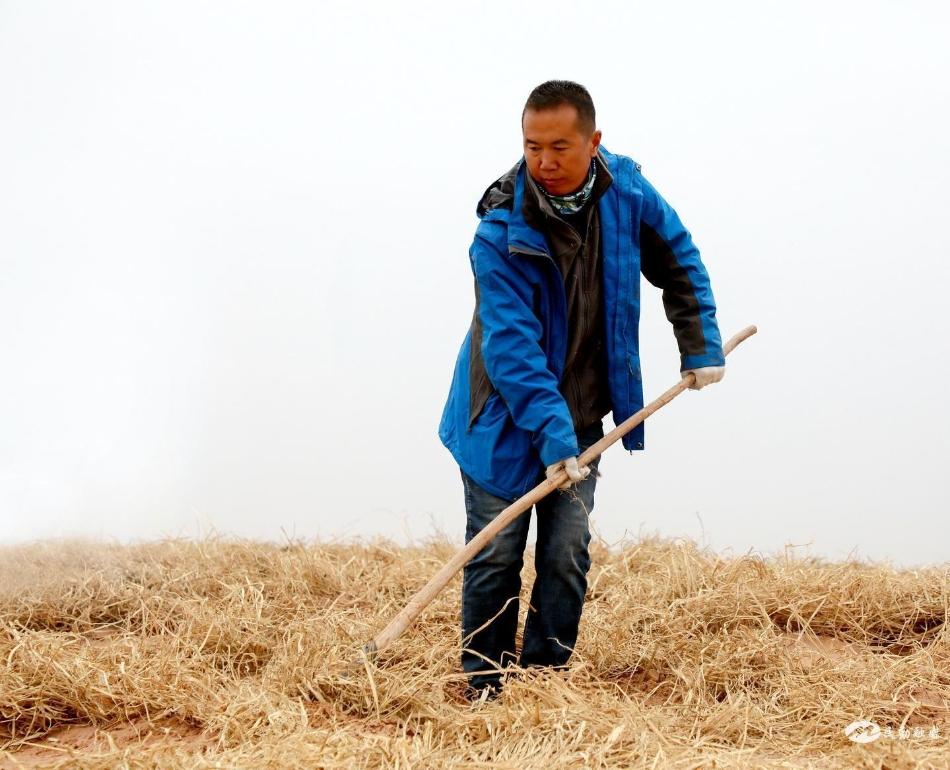 “陶土有很好的保水效果,可使梭梭在少用水的情况下生长。植物纤维毯直接铺在沙丘上,固沙保水,在毯子缝隙下的沙上挖坑种梭梭,成活率在90%左右。固沙剂能凝结表皮的沙子,减少水分蒸发,也能起到节水的作用。”甘肃青梭公益发展中心执行主任马俊河介绍。
