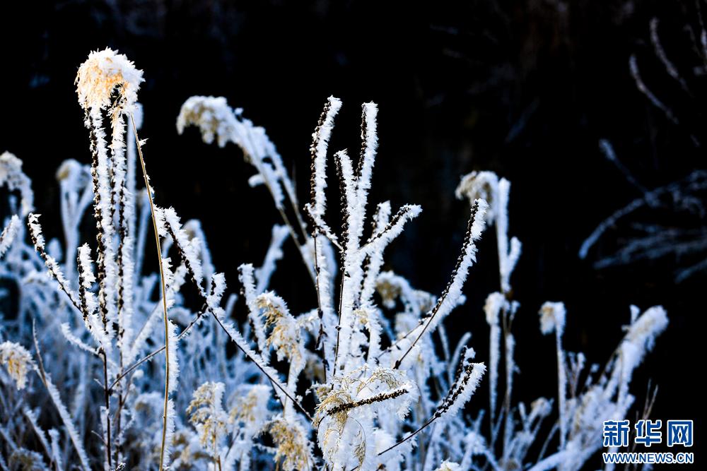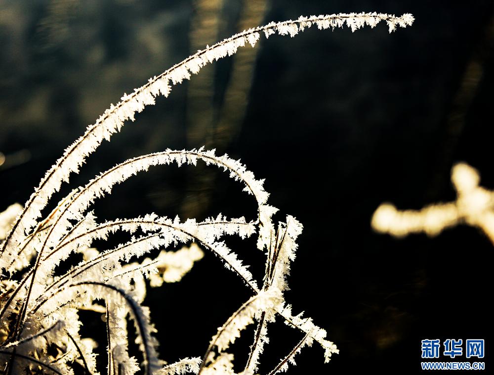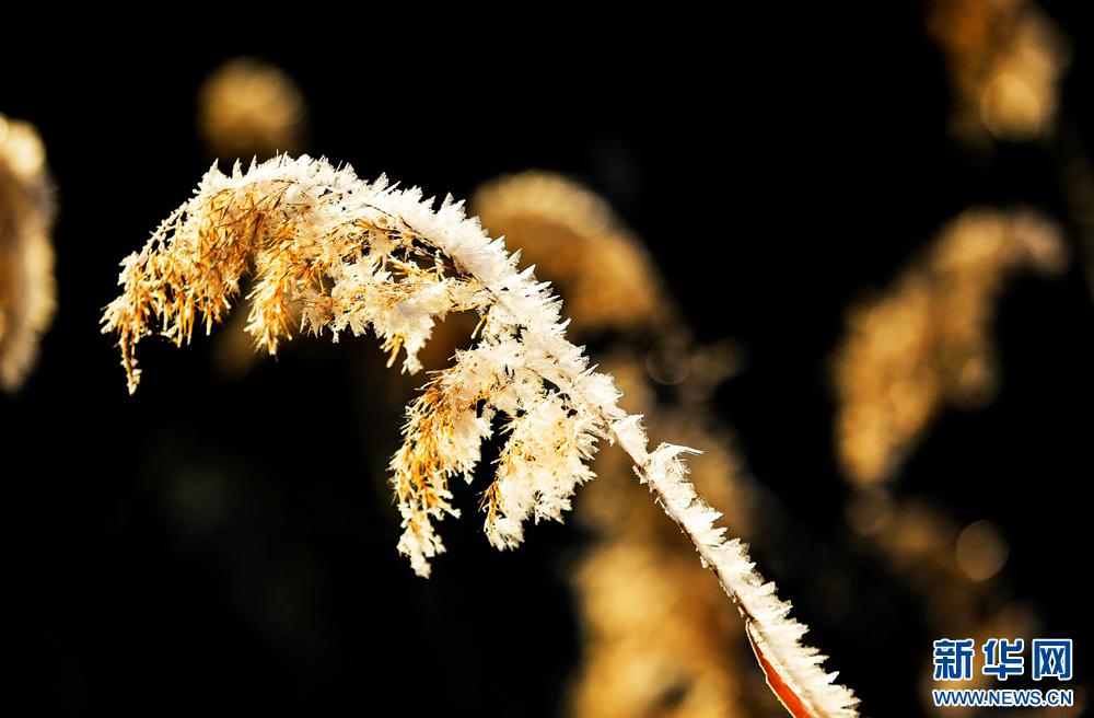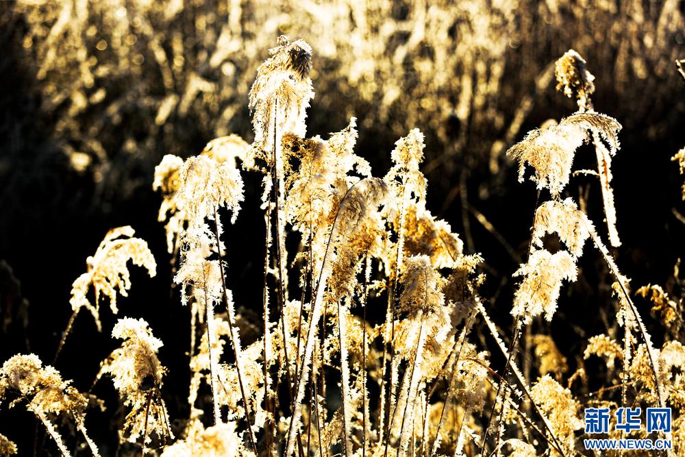 冬日里,甘肃省张掖国家湿地公园芦苇丛中的芦花挂满冰花,晶莹剔透,美不胜收。新华网发(陈礼 摄)