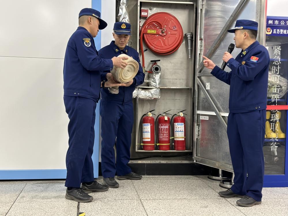 陈官营消防中队指战员讲解消防水枪的使用方法。新华网发(史子玄 摄)