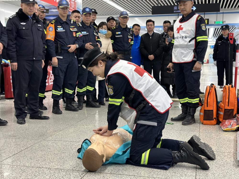 兰州市红十字会工作人员在活动中演示心肺复苏。新华网发(史子玄 摄)