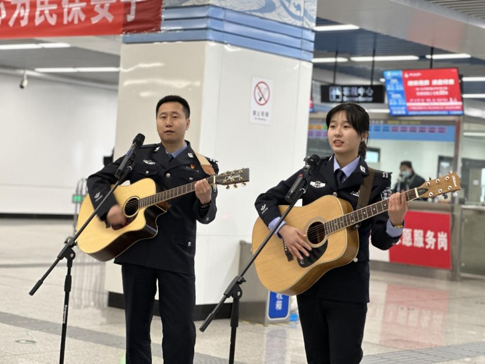 民警表演反诈宣传歌曲。新华网发(史子玄 摄)