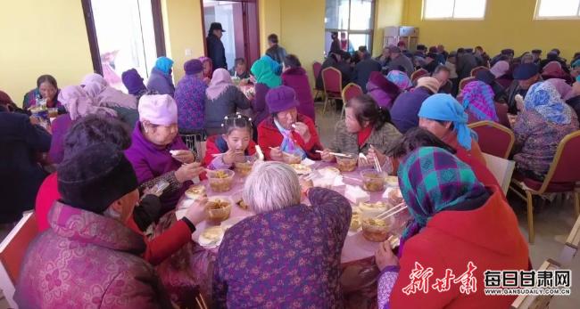 皋兰县黑石镇大横村互助幸福院里,老人们吃上了热气腾腾的饭菜。(资料图)