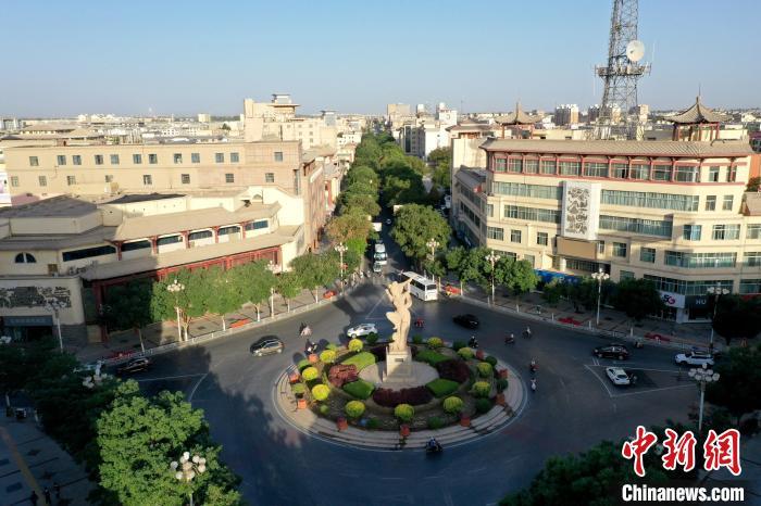 图为敦煌城市内一景,敦煌城标——反弹琵琶。(资料图)张晓亮 摄