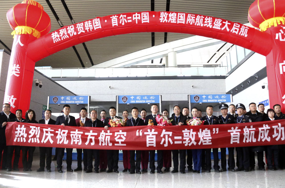 当日,由中国南方航空公司执飞的韩国首尔至中国敦煌国际旅游包机首航航班顺利降落在敦煌莫高国际机场,标志着韩国首尔至中国敦煌的国际旅游包机往返航线正式开通,为两地间的文旅经贸交流搭建了方便快捷的空中桥梁。