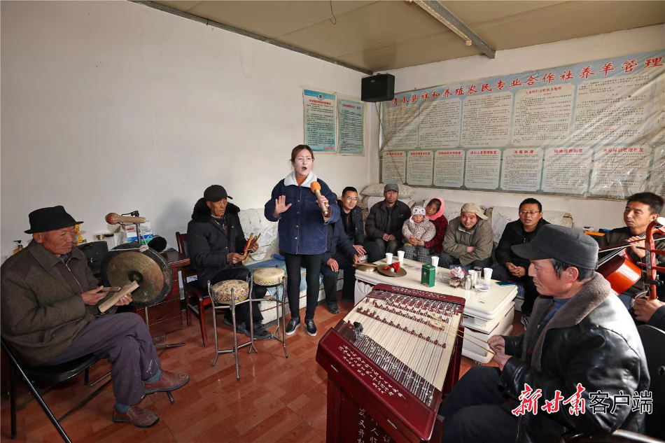 清水县白驼镇姚黄村搬迁群众自发成立的秦腔小剧团正在排练。