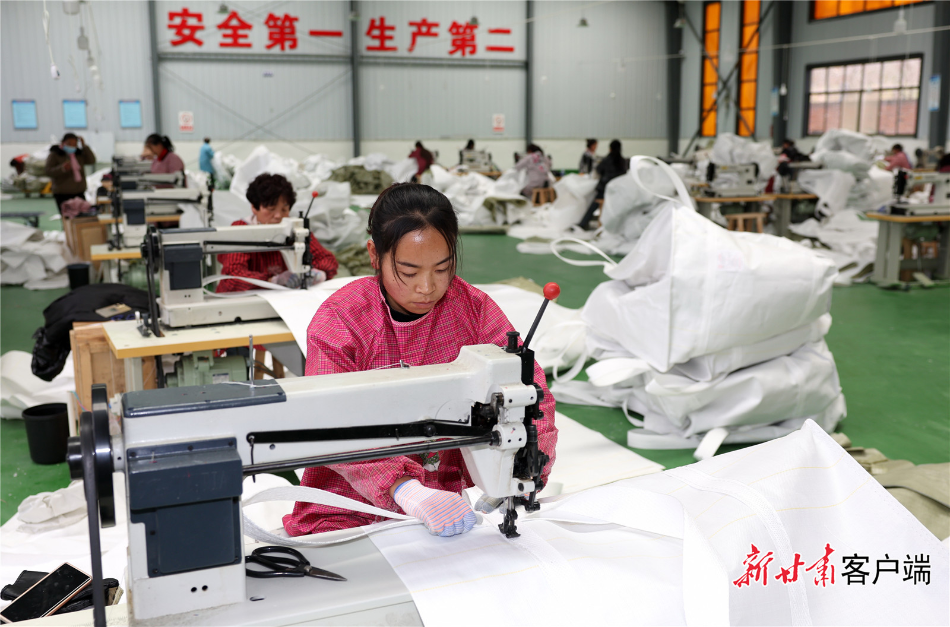 成县小川镇乡村就业工厂的工人在加工生产。