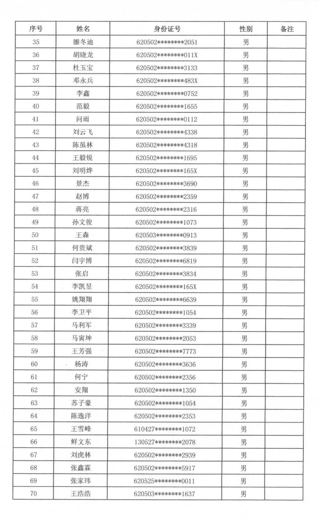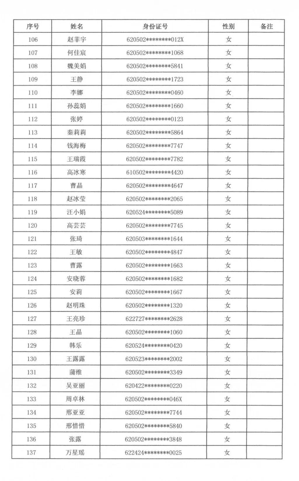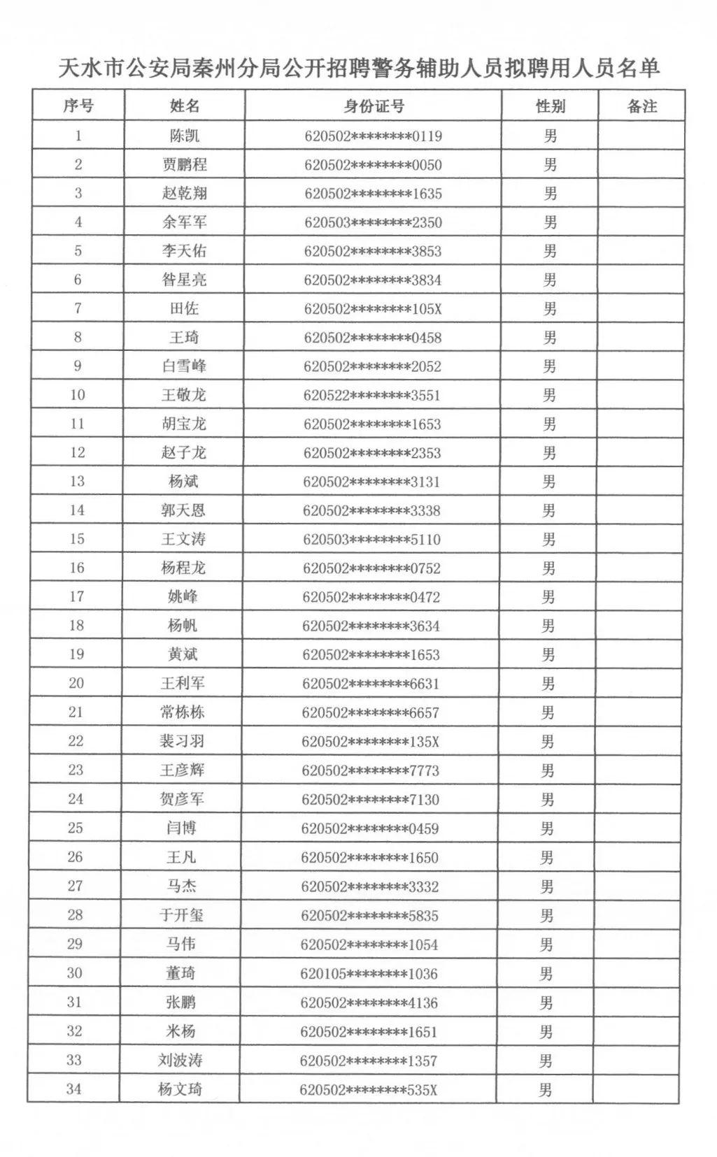 秦州公安公开招聘警务辅助人员拟聘用人员名单公示