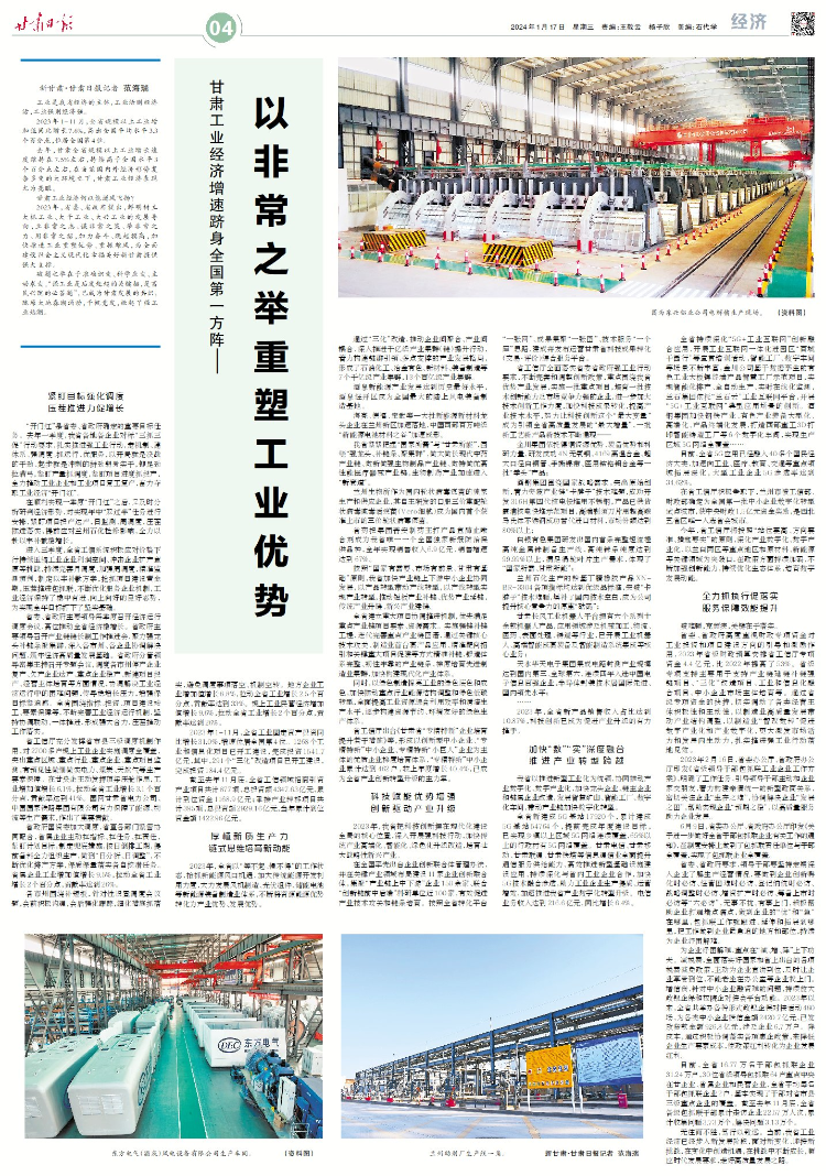 甘肃工业经济增速跻身全国第一方阵——以非常之举重塑工业优势