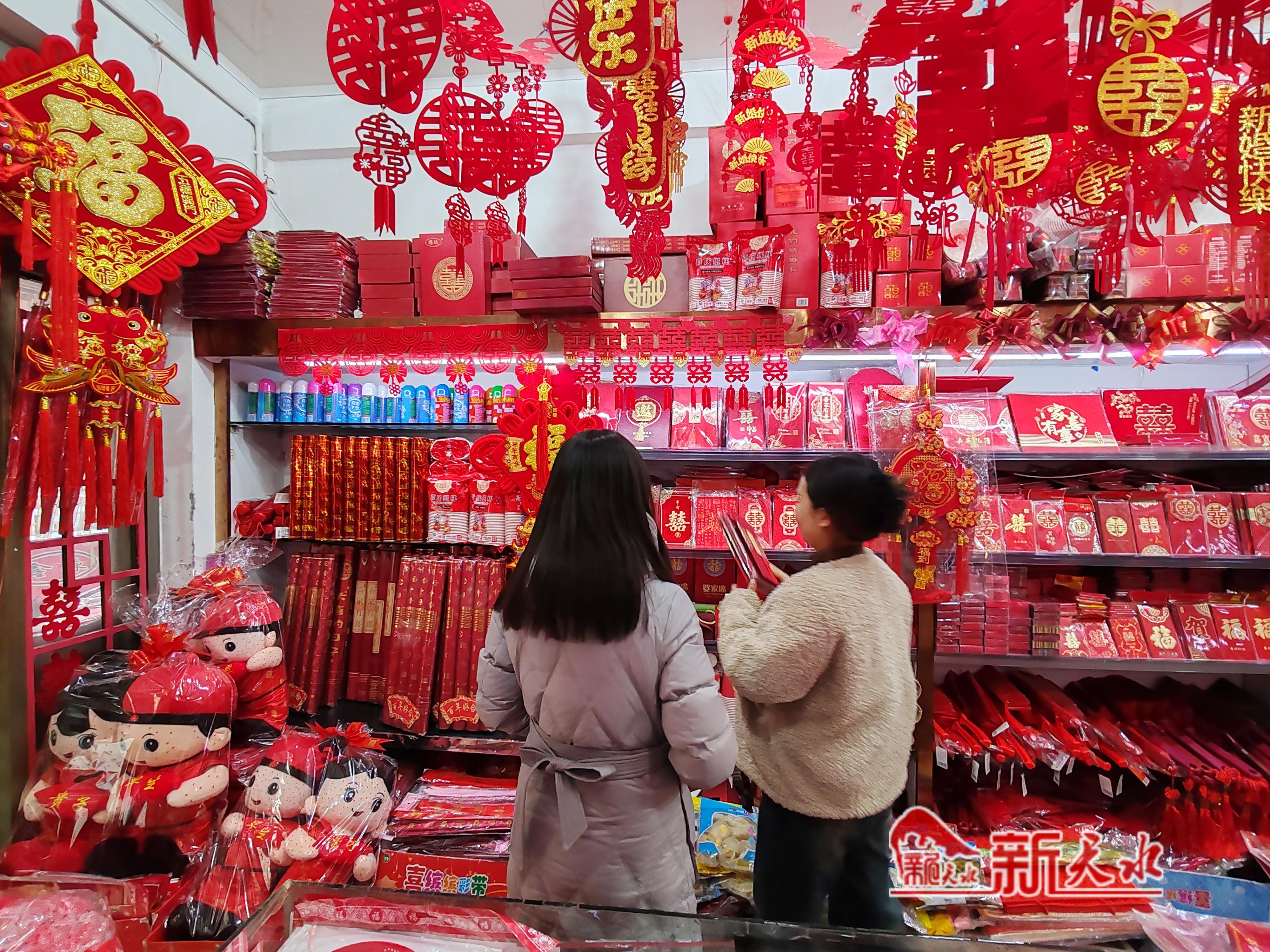 “腊月二十八孩子结婚,我来买点婚庆用品。”“您看看这款国风的婚房装饰套装是今年的新品,销量不错。”蒋女士给儿子挑选婚庆用品,销售人员热情地介绍着。