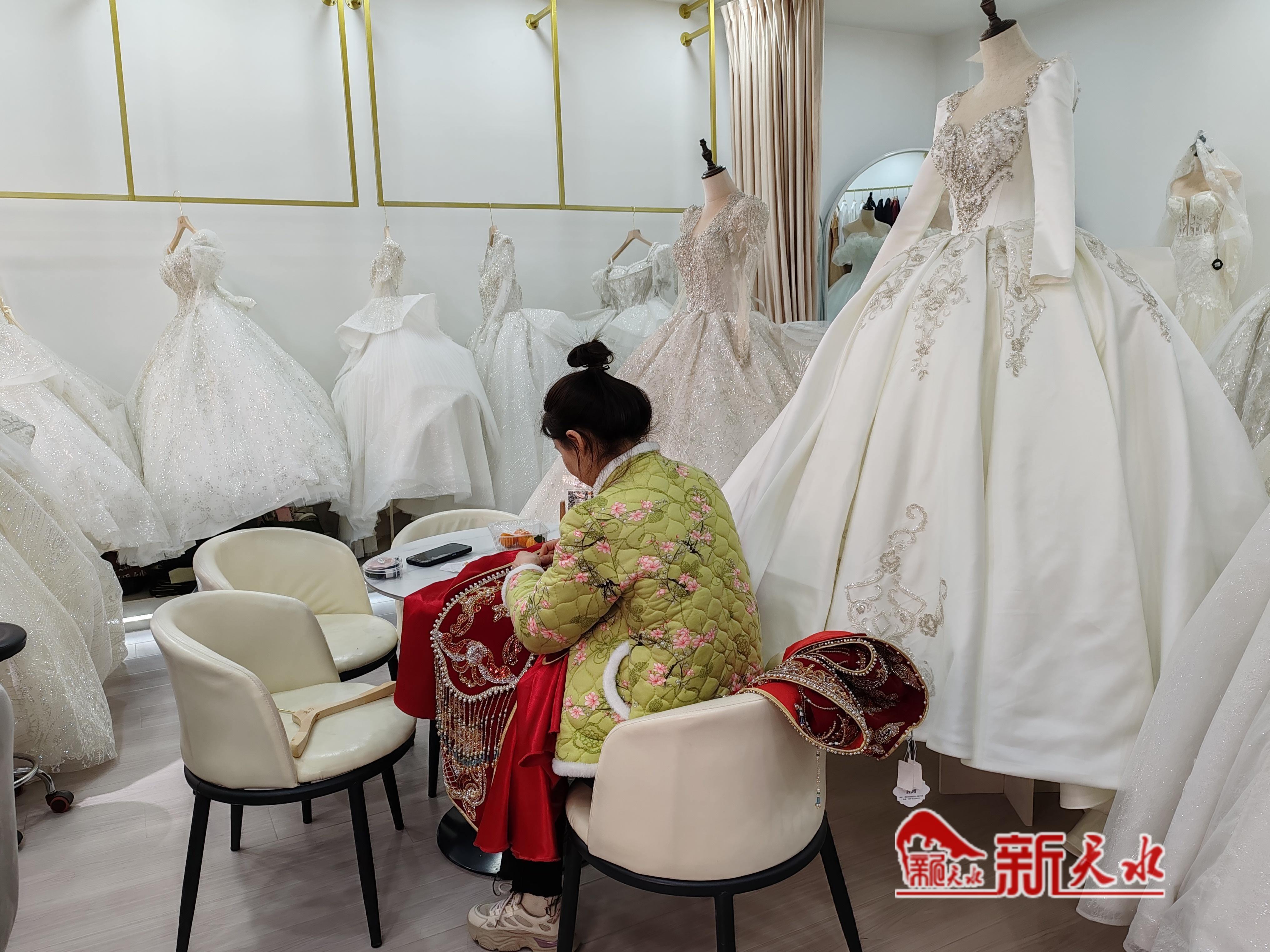 莫奈婚纱礼服店老板裴红莉表示,截至目前,1月份租赁婚纱的已有十几单,如今新人婚服很讲究,结婚当天要换四套礼服,包括晨袍、秀禾、白纱和敬酒服,还有伴娘服、伴郎服等。为了给新人提供更多款式选择,他们提前进了不少新款。