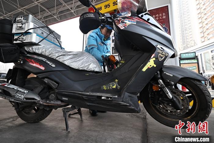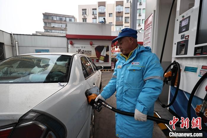 1月17日,山西太原,车辆在加油站加油。当日,中国国家发展和改革委员会发布消息称,根据近期国际市场油价变化情况,按照现行成品油价格形成机制,自2024年1月17日24时起,国内汽、柴油价格每吨均降低50元人民币。中新社记者 张云 摄