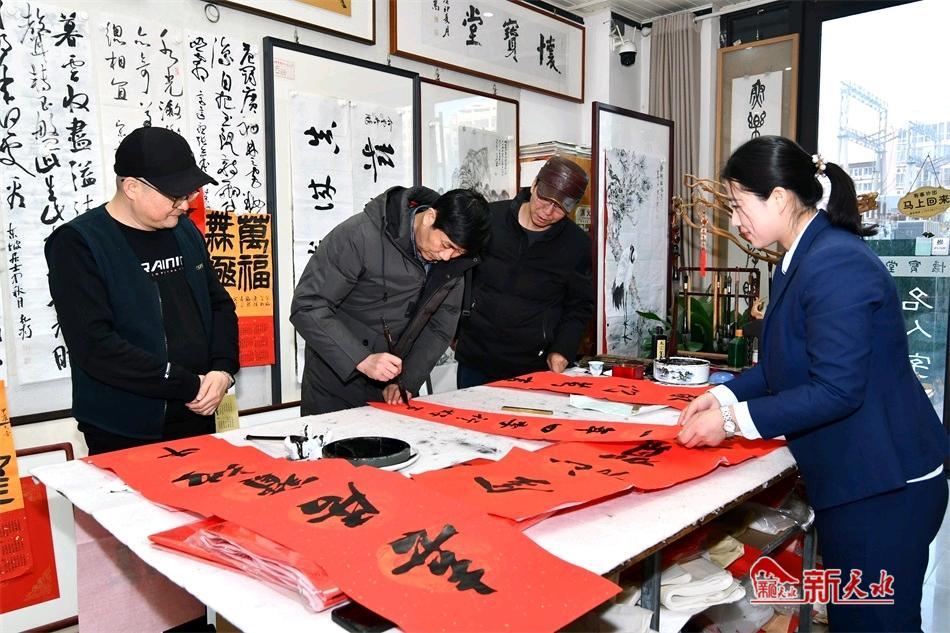 新天水讯【特约通讯员窦耀辉 通讯员窦艺】玉兔欢歌辞旧岁,金龙起舞迎新春。连日来,麦积区怀宝堂书画社开展“迎新春、写春联、送万福、进万家”文艺志愿服务活动,天河社区和社区卫生服务站、新建巷小区便民服务中心开展志愿服务活动,营造出了健康祥和、积极向上的文化氛围和节日气氛,让寒冷的冬天多了一丝温暖,让新春佳节增添了更多的年味儿。