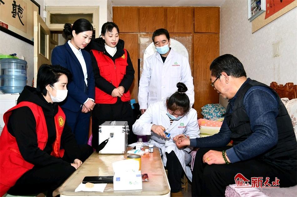 在桥南街道天河社区辖区“送祝福”过程中,天河社区工作人员、天河社区卫生服务站医务人员积极参与其中,将“送祝福”和“献爱心、送健康”活动结合起来,上门为辖区居民送去了节日祝福。每到一户,都详细询问老人的身体状况,倾听他们的声音,关注老人的所需、所想,并将一副副充满喜庆、吉祥、祝福的春联和“福”字送到老人手中,为老人送去一份温暖、一份关爱。