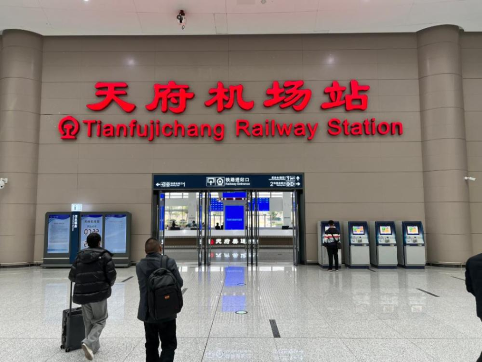 全国首个下穿机场和地铁的时速350公里高铁车站天府机场站首迎春运;