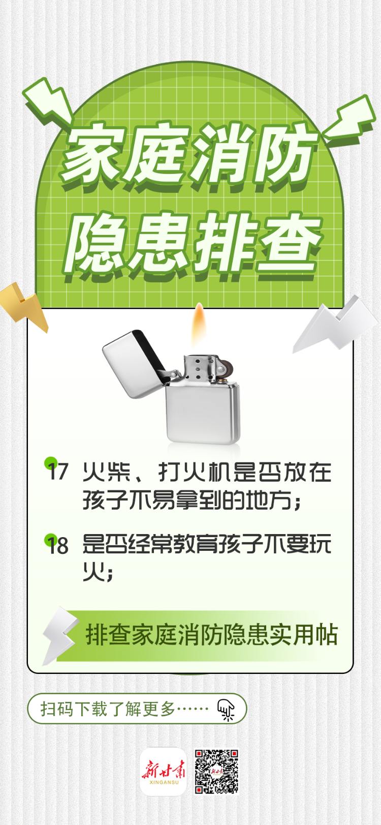 冬季家庭火灾事故多发,很多防火细节需要注意。保障家庭防火安全是每个家庭成员共同的责任,这20条排查方法简单又实用,快快收藏,和家人一起学起来!