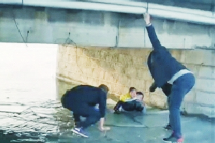 幸好有5名热心男子破冰相救