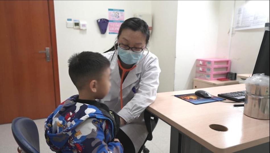 重庆医科大学附属儿童医院医生正在诊治患儿。新华社发