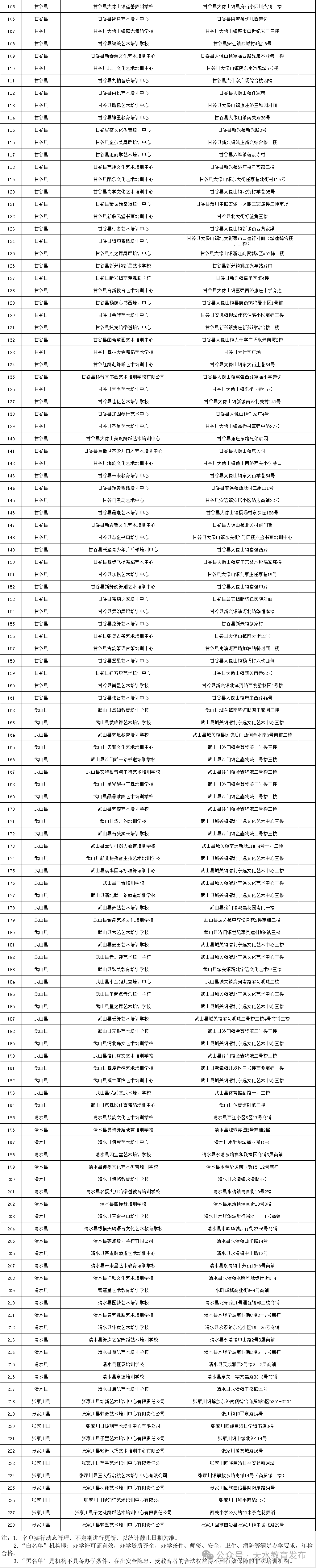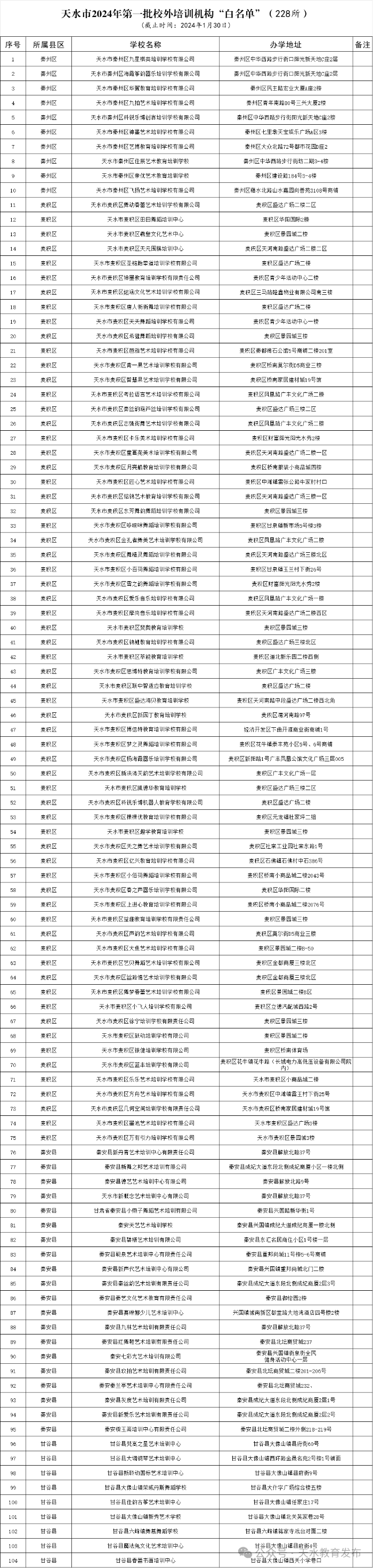天水市教育局关于公布2024年第一批校外培训机构“黑白名单”的公告
