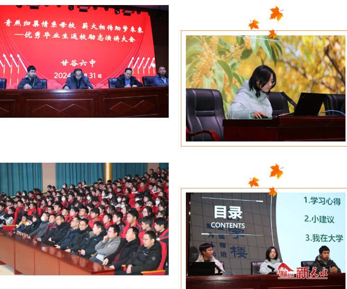 新天水讯【特约通讯员闫锁田】近日,甘谷县第六中学举办了一场别开生面新老校友回访母校活动,来自80届的17位老校友再观母校景、再叙师生情,现就读于清华大学等知名高校的4名新校友通过演讲方式寄语学弟学妹,砥砺奋斗情怀。
