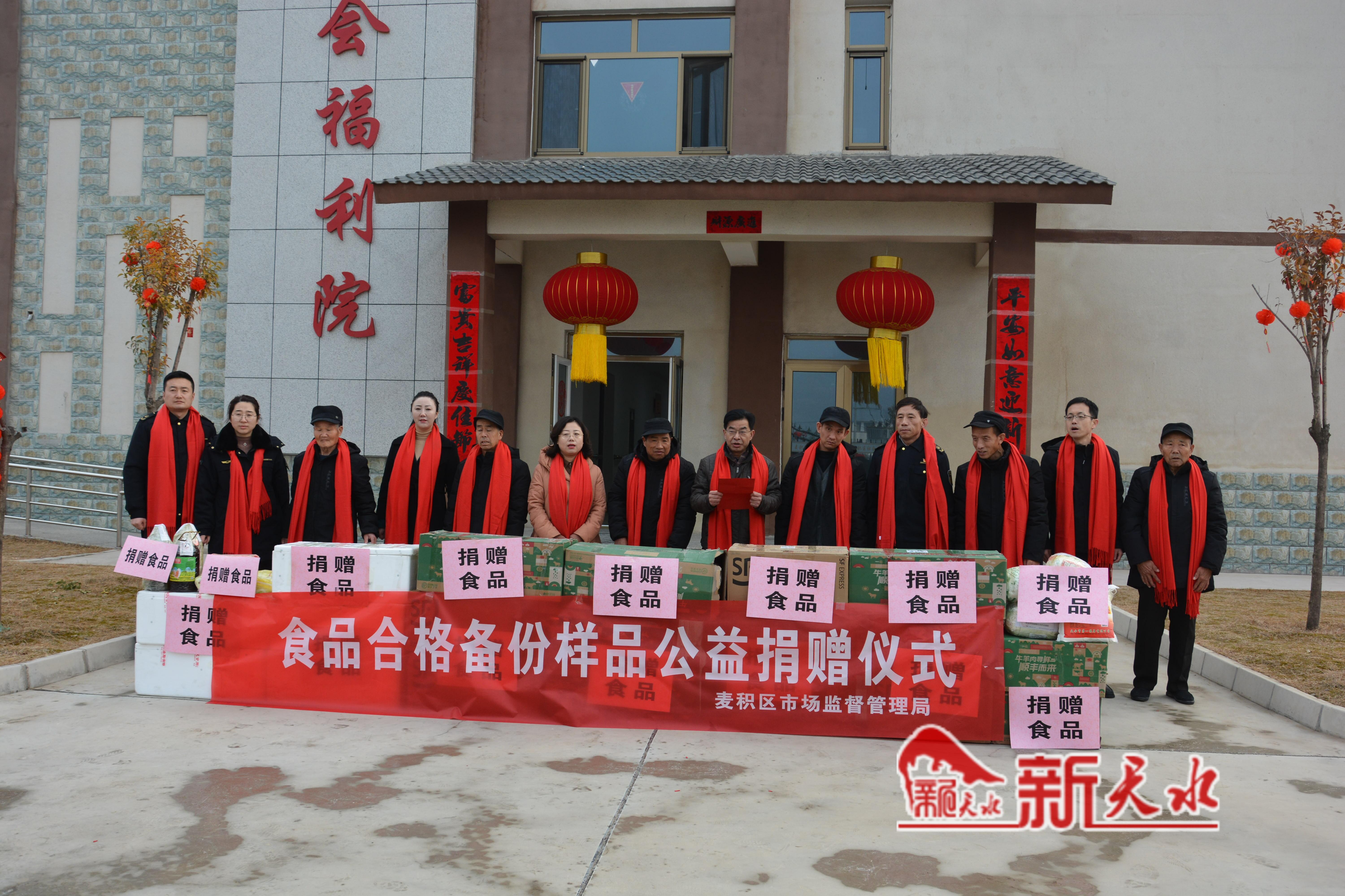 新天水讯【记者张彬霞 赵军霞 崔柏璇】2月1日,麦积区市场监管局赴麦积区社会福利院,开展食品抽检合格备份样品爱心捐赠活动,为老人们送上一份温暖。