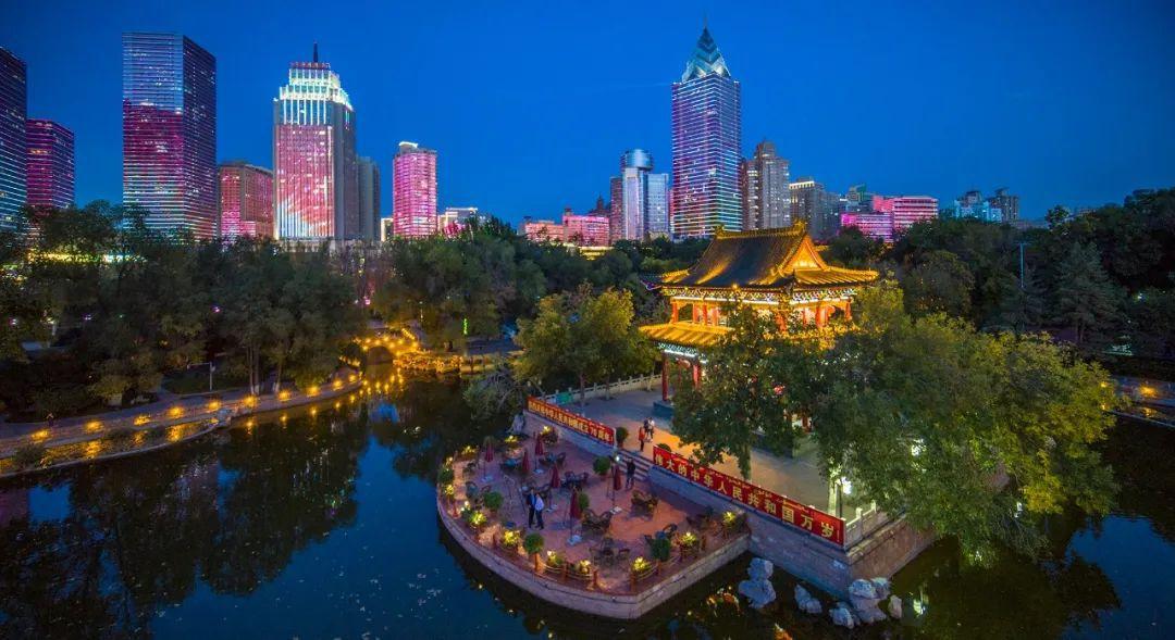 乌鲁木齐市人民公园夜景。新疆雅辞文化 供图
