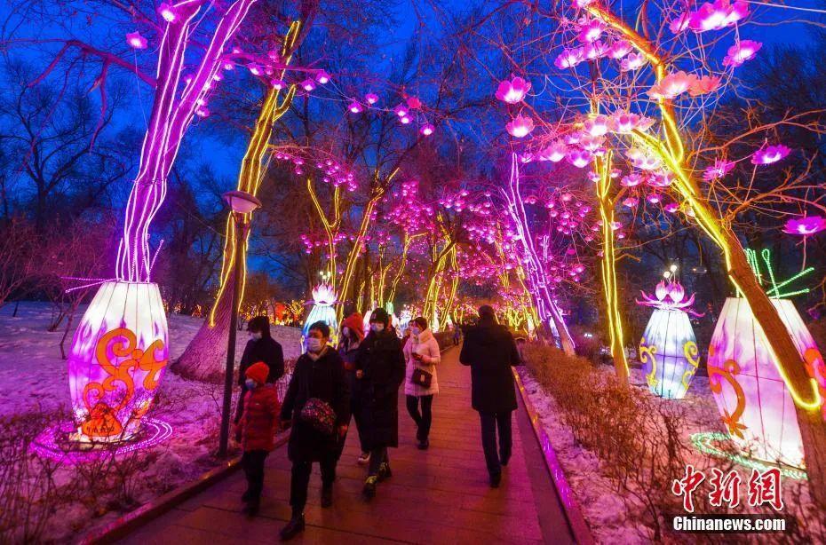 乌鲁木齐市人民公园花灯璀璨,浓浓年味扑面来。潘琦 摄