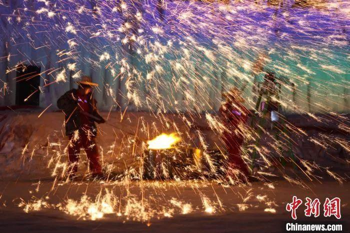 天山明月城师傅将滚烫的铁水打向空中。姚治超 摄