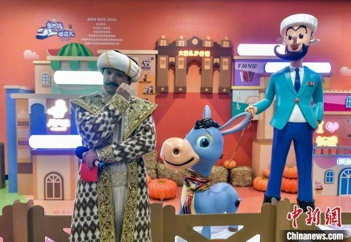 演员扮演的“阿凡提”在乌鲁木齐市二道桥地铁文化主题站做推介。刘新 摄