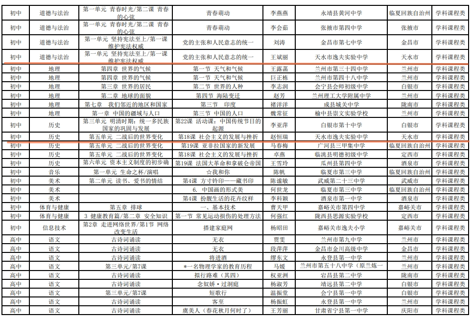 2023年“基础教育精品课”遴选工作"省级精品课”公示名单