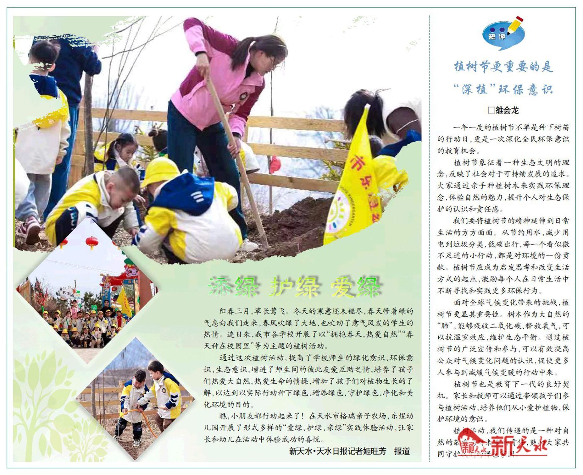 瞧,小朋友都行动起来了!在天水市格瑞亲子农场,东煜幼儿园开展了形式多样的“爱绿、护绿、亲绿”实践体验活动,让家长和幼儿在活动中体验成功的喜悦。