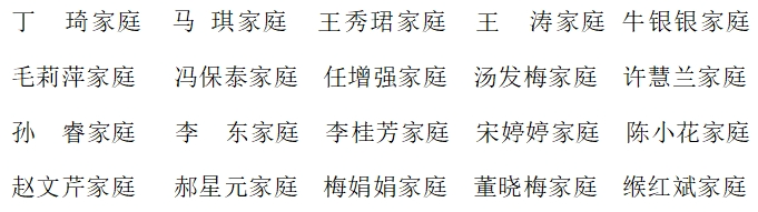 为深入贯彻落实习近平总书记关于注重家庭家教家风建设的重要论述精神,传承和弘扬中华民族家庭美德,营造崇廉尚德、向善向上的新风正气,推动社会主义核心价值观在家庭落地生根,根据省妇联《关于做好寻找推荐2024年全省最美家庭工作的通知》(甘妇发〔2024〕9号)要求,经自下而上推荐与严格审查筛选,天水市妇联拟推荐全省“最美家庭”20户,现予以公示,接受社会各界监督。