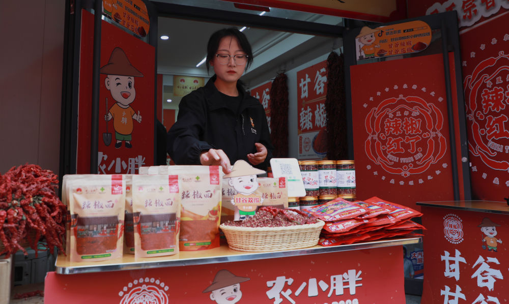 记者见到云亚兵的时候,他正忙着给店里补货。他经营的甘肃土特产店位于天水伏羲城步行街,由于天水麻辣烫爆火带来的巨大人流,他店里的辣椒等产品销量大增,尤其是甘谷辣椒经常卖到脱销。