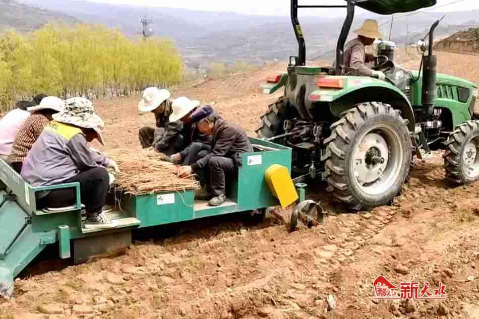 新天水讯【特约通讯员 李晓兵】 四月的王尹,天气渐暖。连日来,在尹川、王川两村的南山屲和柳川区域,刚开垦的片片农田整齐分布,一台台大型耕地机开足马力作业,村民们穿梭在田间地头,忙着种植黄芪,整苗、栽苗、覆土,群众热情似火,铆着劲栽种中药材,一派忙碌的热闹景象。