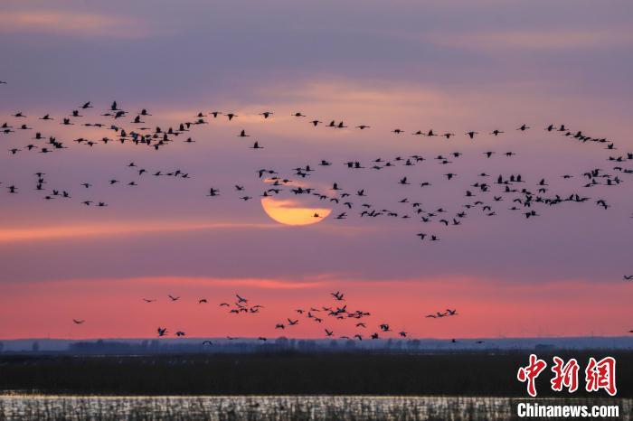 内蒙古“百鸟天堂”迎候鸟迁徙高峰 白鹤数量大幅提升