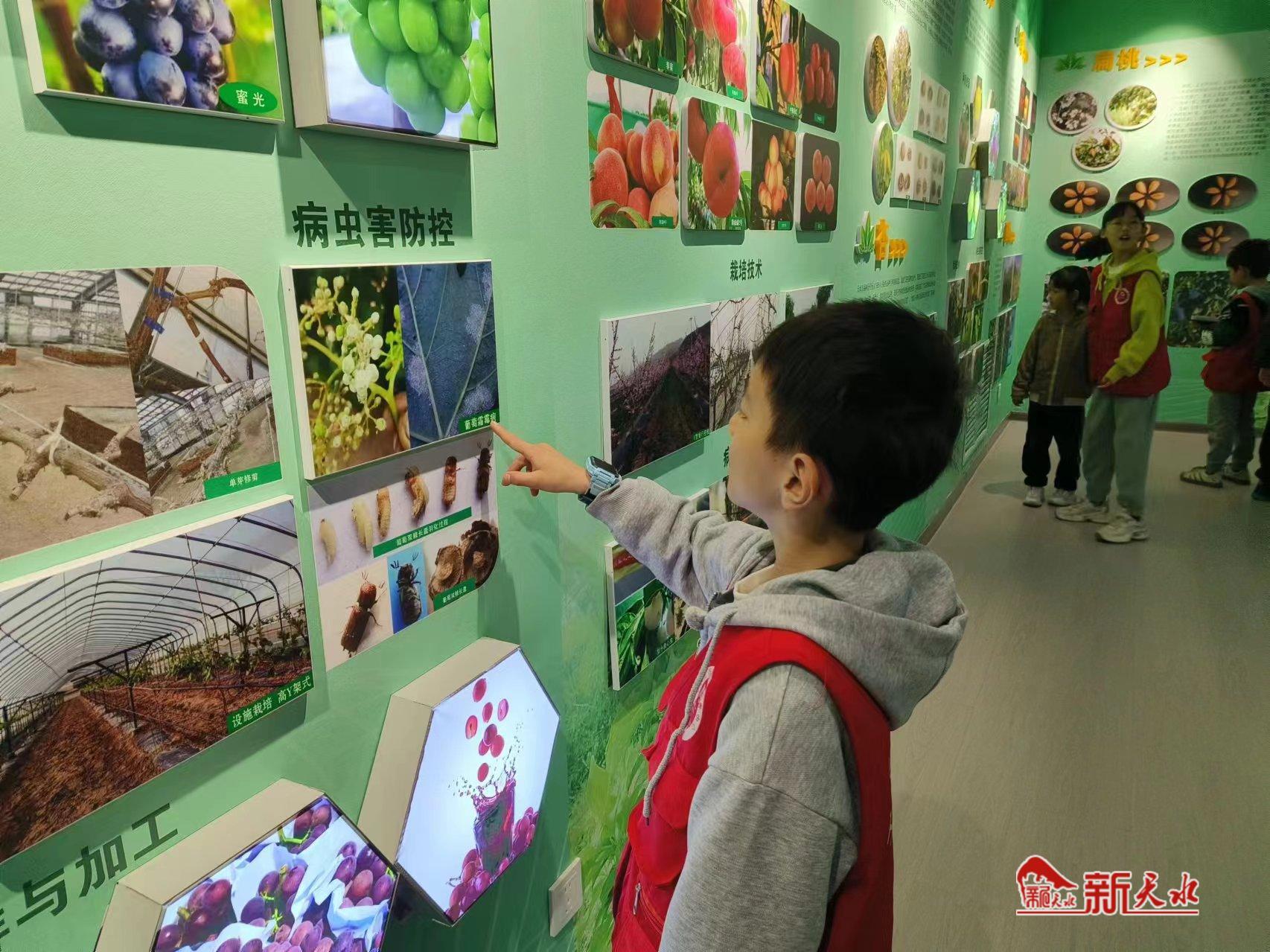 在讲解员老师的引导下,小记者们首先参观了科技展厅和昆虫、植物标本室,知道了天水果树栽培的科研发展史,天水苹果的发展历史,天水果树的栽培树种、品种以及昆虫、植物、果实标本的制作方法和过程等。小记者们饶有兴致地看着这些标本盒里摆列整齐、品种繁多的昆虫标本,发出了啧啧的惊奇声,积极向老师发出提问,并认真记录着。这些很多出现在课本中的“植物”和“知识”对他们来说再也不是那么遥远,而是如此的生动有趣!