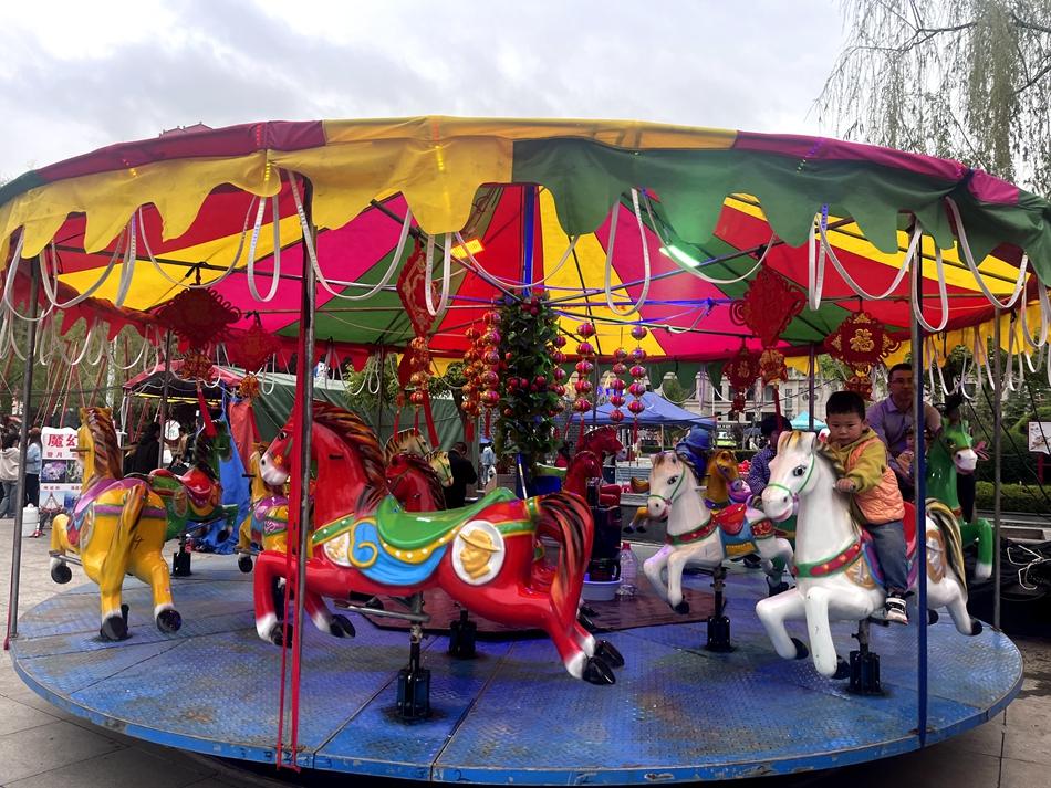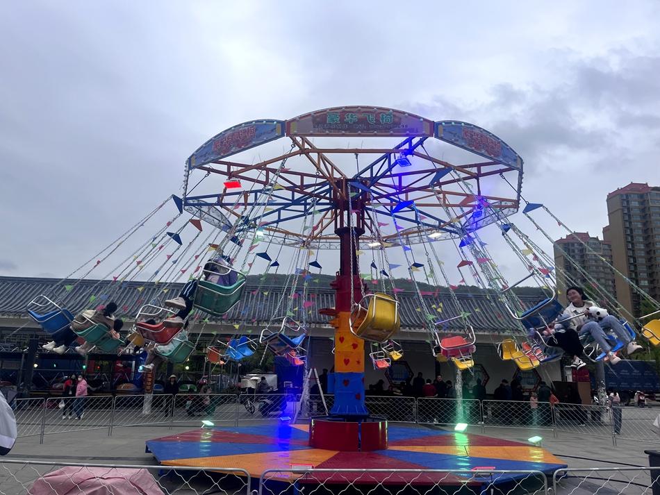 游乐场的套大鹅、空中飞椅等项目也吸引着年轻游客打卡体验,套大鹅的“神动作”超乎大家想象,高空旋转的空中飞椅让他们感受着快速心跳的刺激体验。