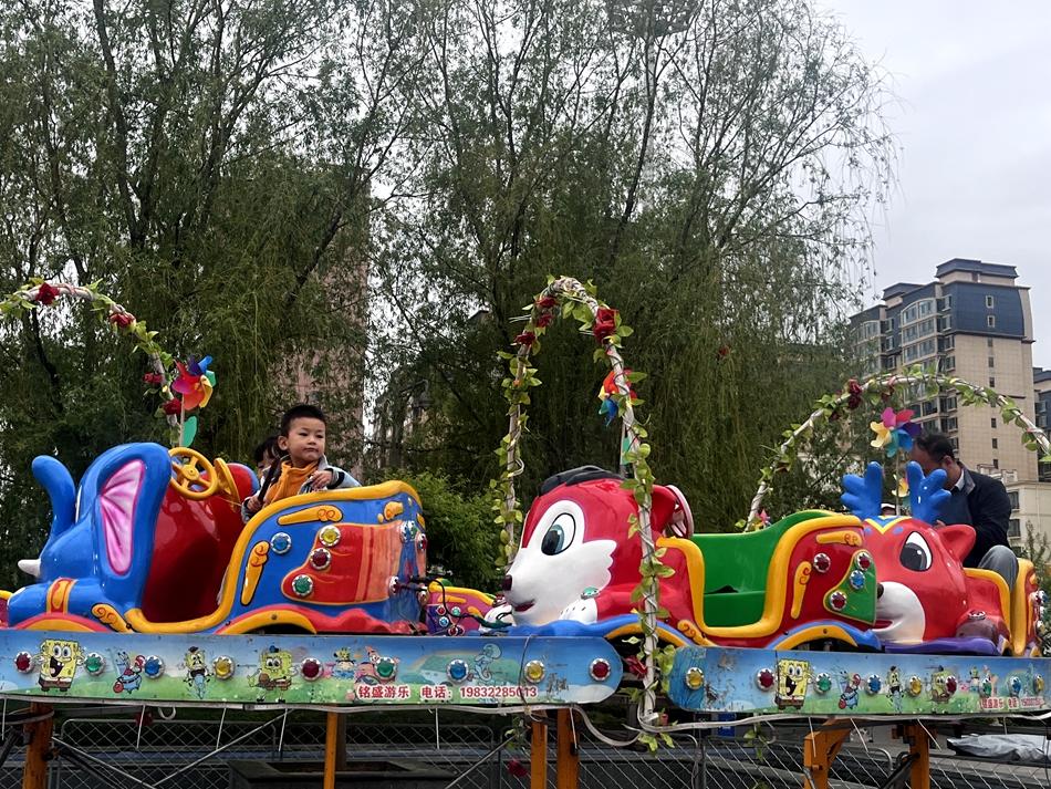 5月2日,记者来到充国广场游乐场,场地内游乐设施多种多样。七彩滑道、充气城堡、旋转飞机、旋转木马、碰碰车等20多个游玩项目供广大游客体验。在家长的陪同下,小朋友们坐着过山车、骑着旋转木马开心地玩乐,孩子们刚从一个游乐项目下来,就急匆匆赶到下一个项目,玩得兴高采烈,有趣的亲子互动节目让整个广场里充满了欢乐的笑声。