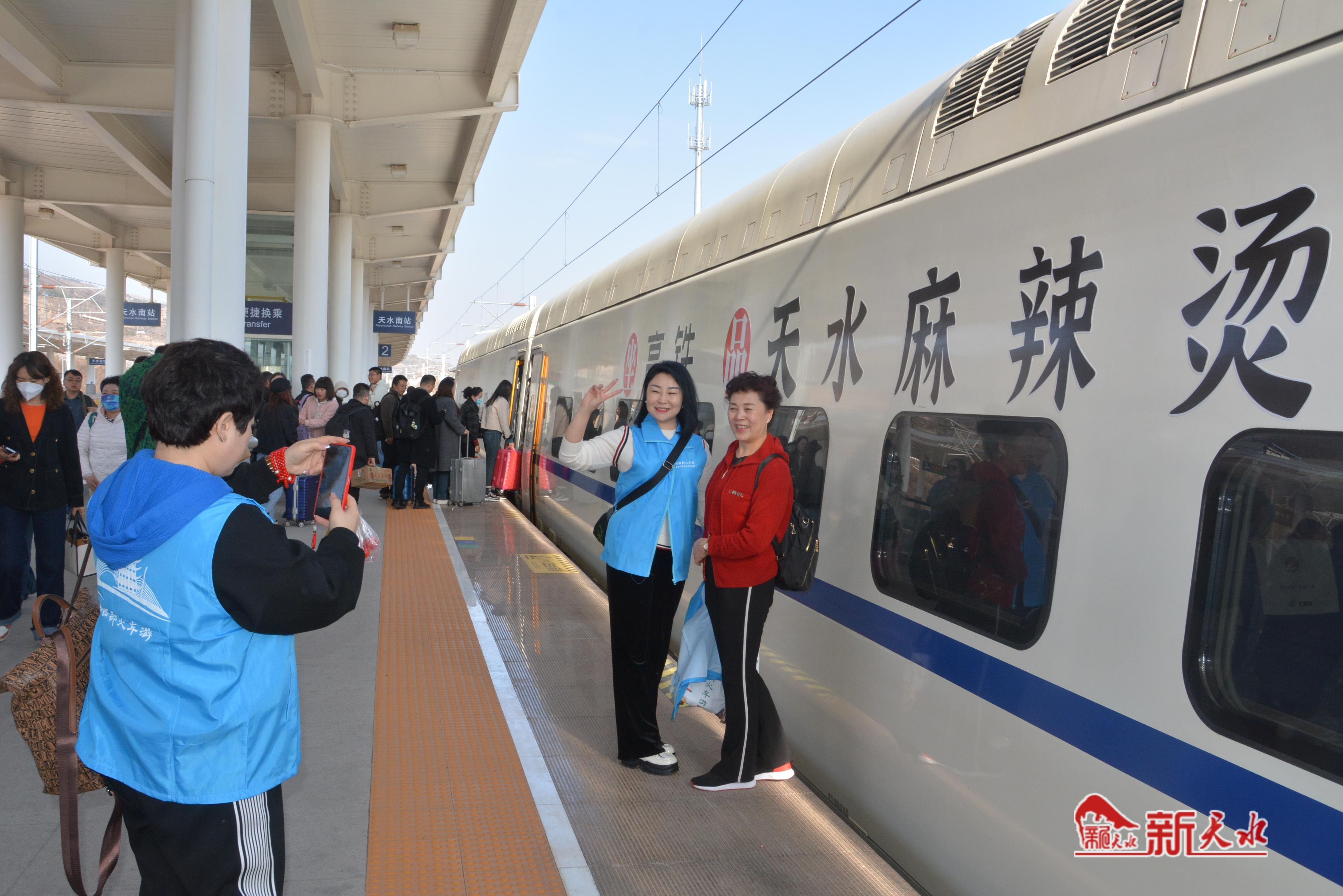 自天水麻辣烫火爆“出圈”后,许多游客乘坐列车跨越千山万水,奔赴“麻辣之旅”,在天水尝美味、赏春景、品文化,共享“诗和远方”。据统计,3月11日至5月2日,天水南站、陇海线天水站已累计到发旅客217.23万人,而且这个数字仍在持续增长。便捷的交通,让众多游客因“来一场说走就走的旅行”而云集天水,带动了铁路客流持续攀升,天水南站单日客流多次被刷新,创建站以来历史新高的旅客发送量也一次次被改变,尤其是兰州铁路局及时开行的天水麻辣烫旅游专列,更是让游客感受到浓浓的美食氛围,为更多的游客共同奔赴“热辣滚烫”提供了快捷。