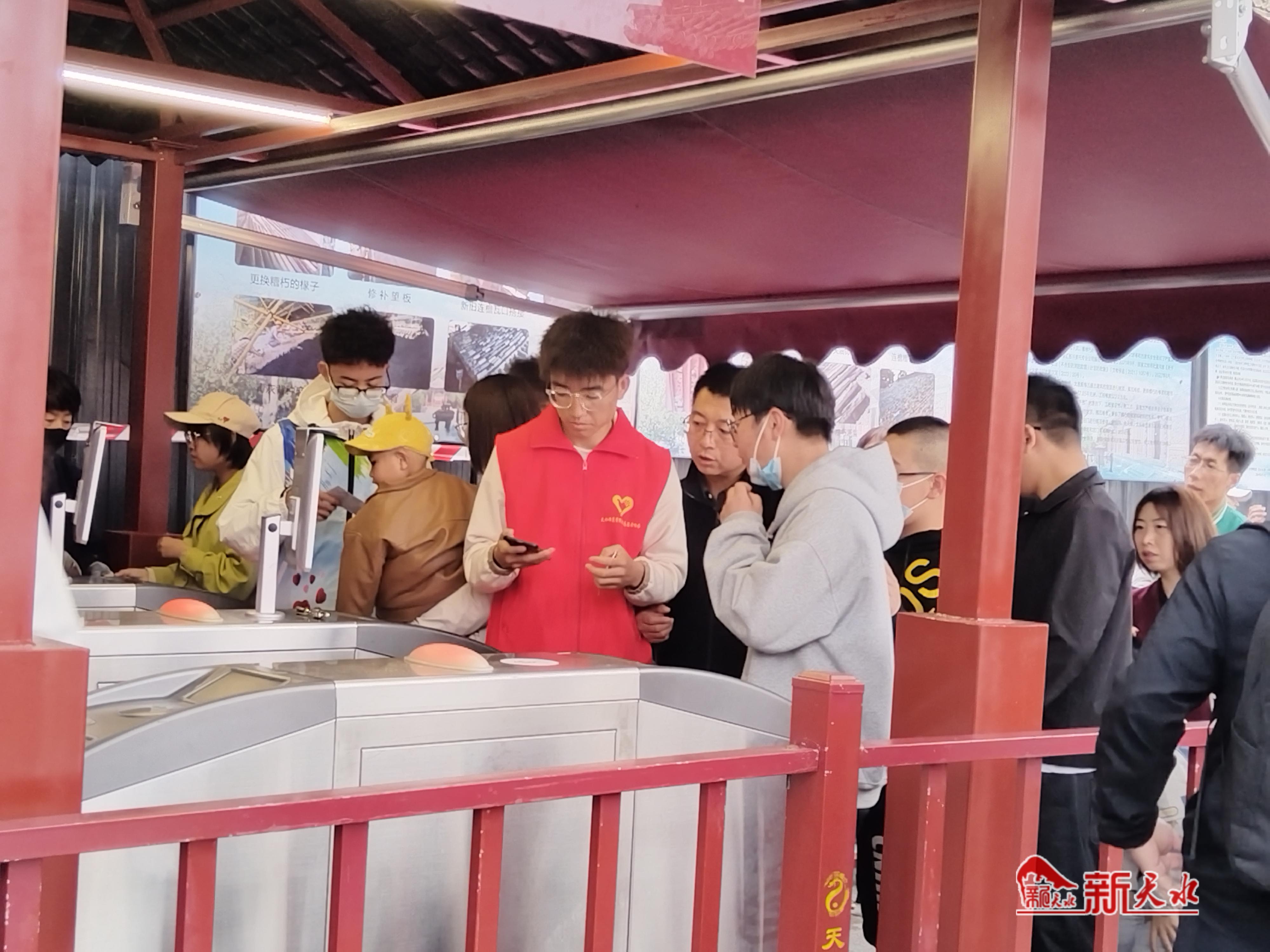 新天水讯【记者蔚军平】美景供人欣赏,美德让人敬仰。今年“五一”小长假,我市各旅游景区景点再次迎来新一轮客流高峰,尤其是麦积山、伏羲庙,在假日首日再次进入“人从众”模式,游客在乐享假期惬意时光的同时,以文明的举止言行为出游添彩,文明旅游已成为大家的一种自觉行为。