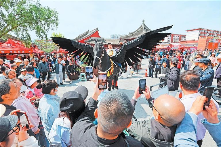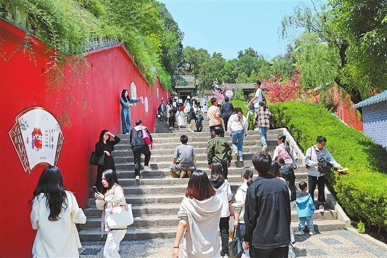 伏羲庙广场吸引游客打卡拍照。