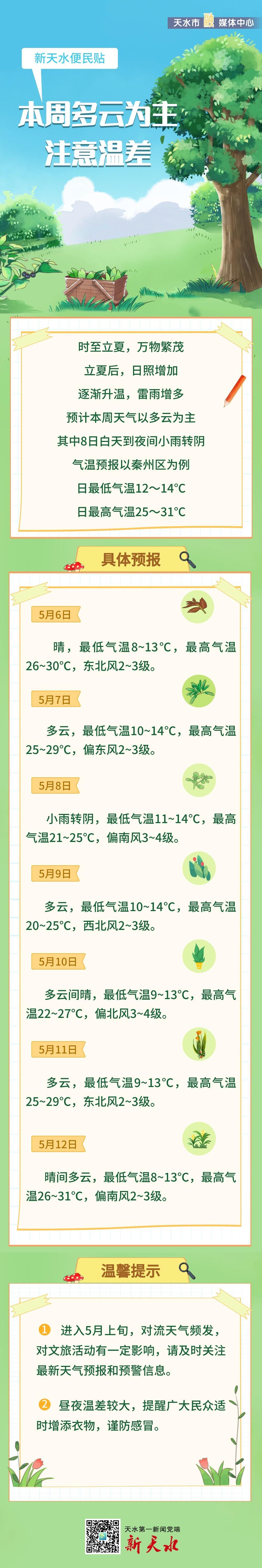 【新天水便民贴】本周多云为主 注意温差