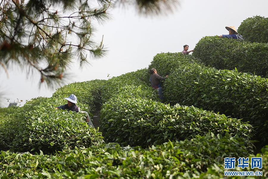 5月5日,村民在贵州省丹寨县龙泉镇马寨村茶园采摘茶叶。新华网发(杨武魁 摄)