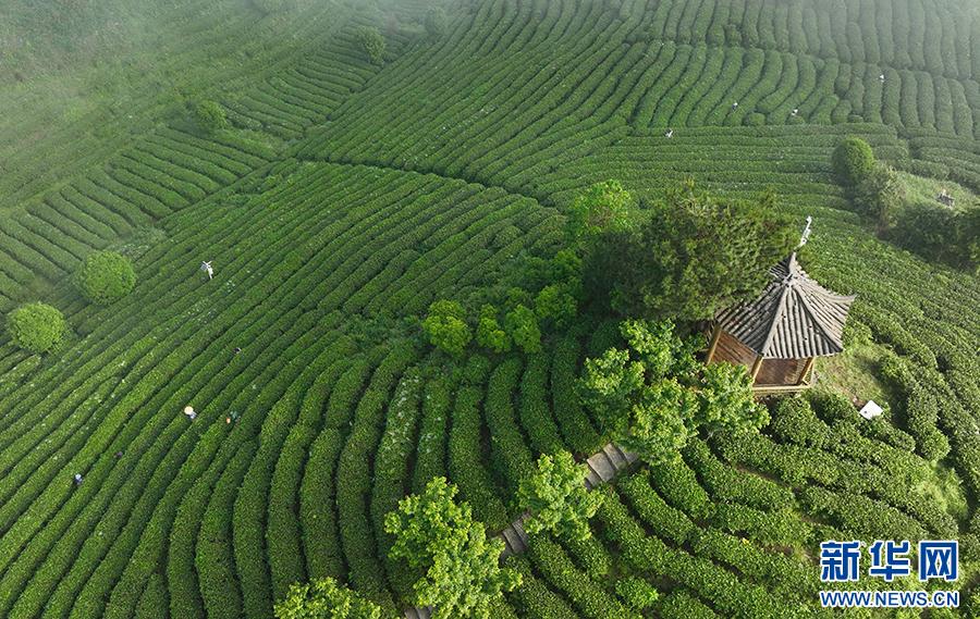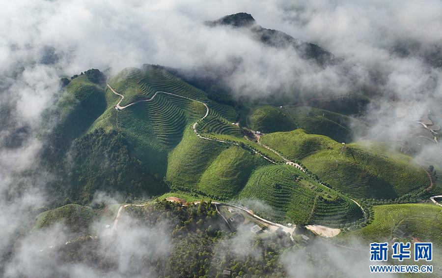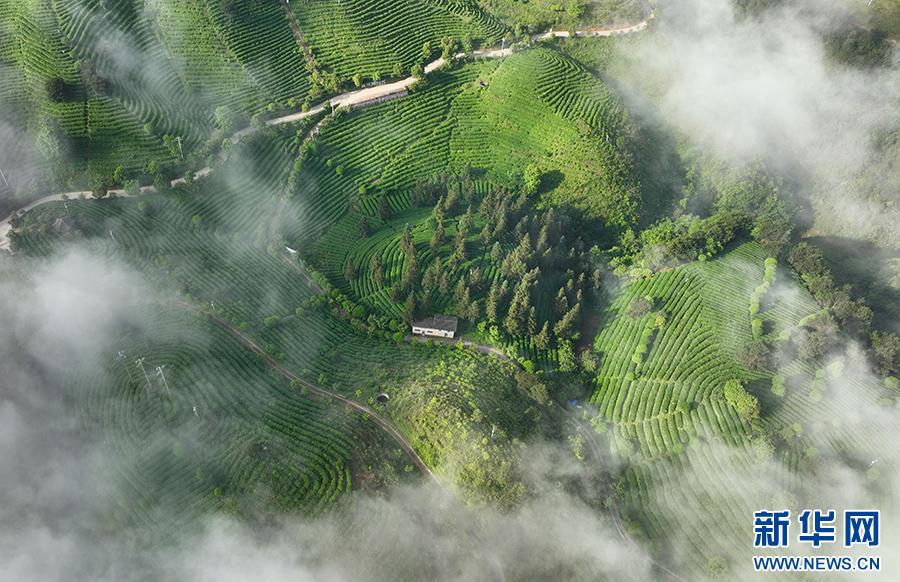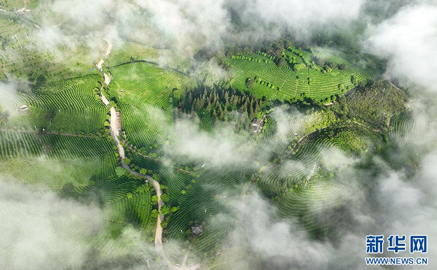 立夏时节,贵州省黔东南苗族侗族自治州丹寨县龙泉镇马寨村茶园云雾缭绕,如梦如幻,美若画卷。