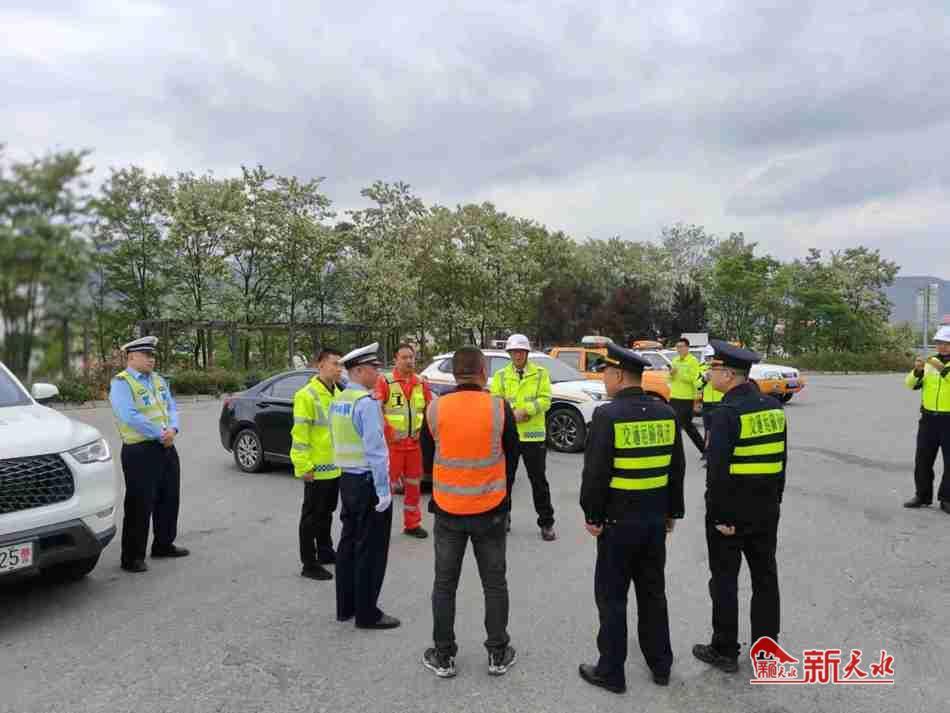 图为天水清障救援二大队联合“一路四方”单位开展节前道路安全隐患排查。(任杰 摄)
