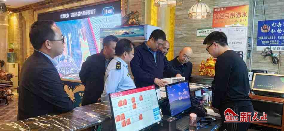 图为甘肃省文旅厅督导检查甘谷县文旅市场安全生产工作。(通讯员 康想珍 摄)