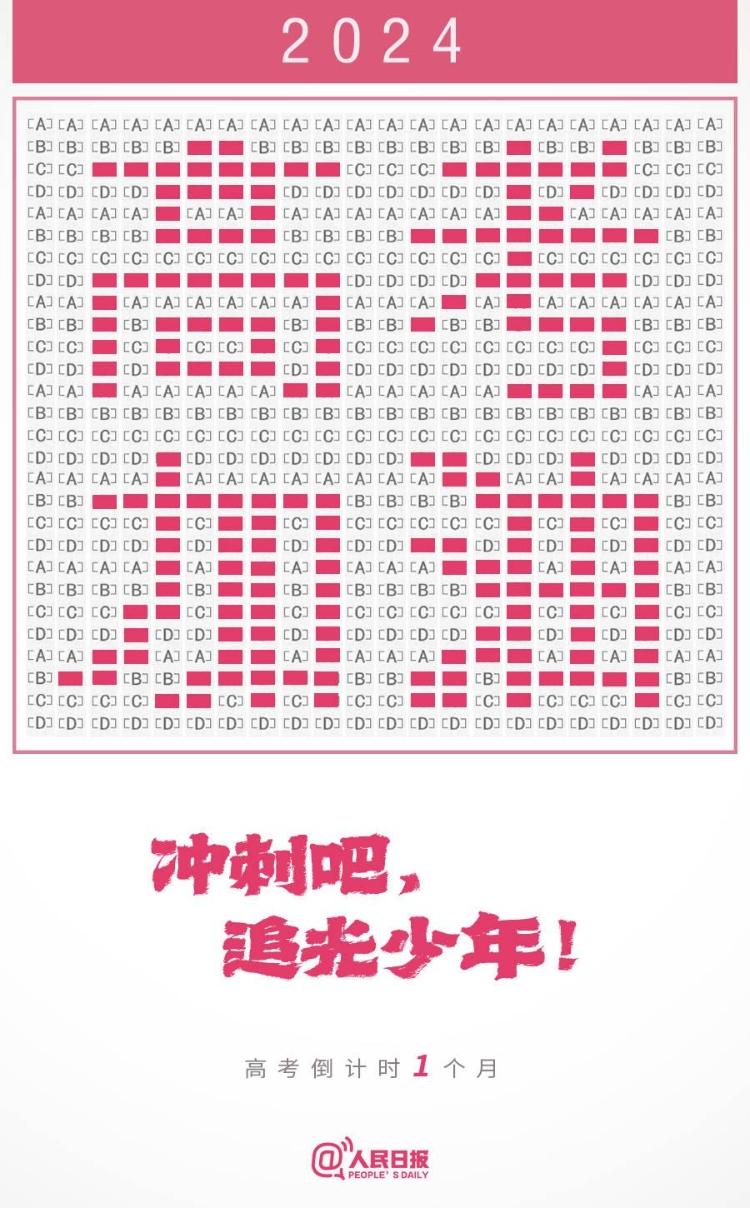 距2024年高考仅剩一个月。最后一个月,请付出百分之百的努力,梦想成真之际,你定会感谢此刻踮起脚尖的自己。每个奋力拼搏的你,都是最棒的。追光的你,请继续坚持,全力以赴。加油,祝福所有考生!