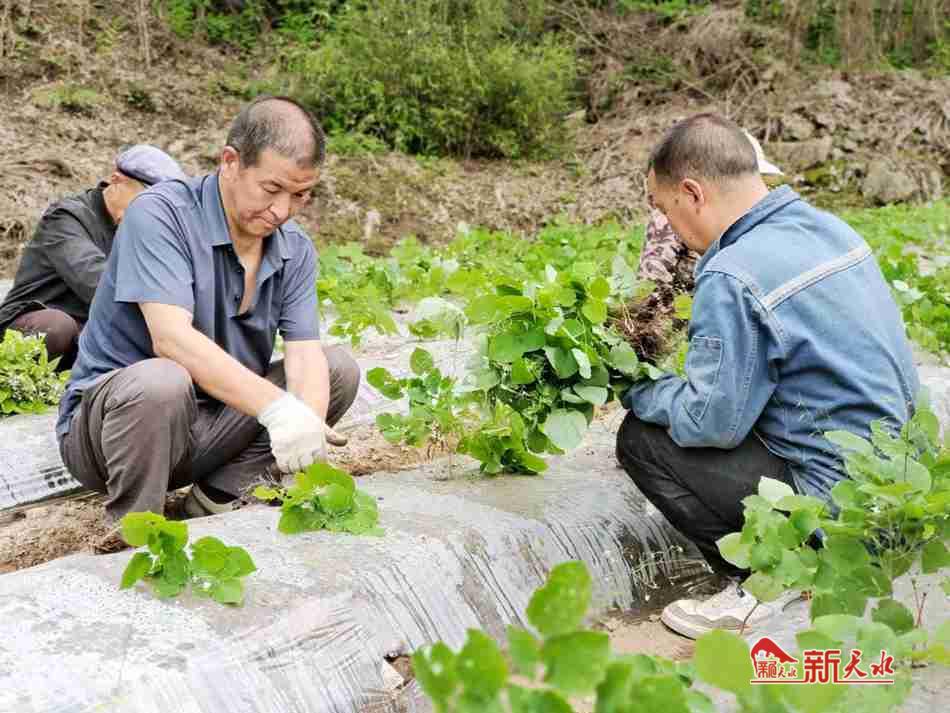 新天水讯 连日来,在甘谷县武家河镇格板峪村,镇村干部一直忙着组织群众进行淫羊藿、毛慈菇等中药材试种工作,2000株淫羊藿苗、900株毛慈菇苗全部完成栽种。