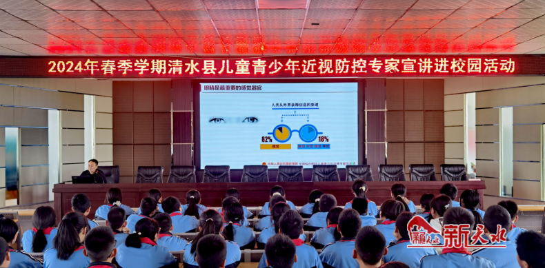 新天水讯 为进一步贯彻落实《天水市综合防控儿童青少年近视实施方案》,全面做好全市近视防控宣传月活动,积极推广普及预防儿童青少年近视防护知识,全面培养儿童青少年近视防控良好习惯,持续实现儿童青少年近视率下降目标,市卫生健康委、市教育局、市健康教育所3部门联合下发了《关于做好2024年春季学期全市儿童青少年近视防控专家宣讲进校园活动的通知》,组织了全市19名市级宣讲团成员,从3月份开始开展了40场近视防控宣讲进校园活动,积极宣传推广预防儿童青少年近视视力健康科普知识。