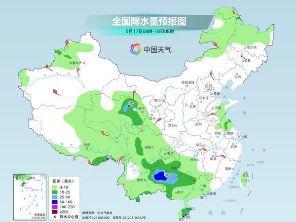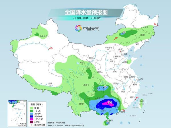 后天,天津、湖北南部、云南东南部、江南南部、华南大部等地部分地区有大到暴雨,其中,广东中西部部分地区及粤港澳大湾区有大暴雨,局地特大暴雨。