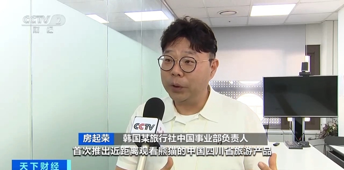 韩国某旅行社中国事业部负责人 房起荣:首次推出近距离观看熊猫的中国四川省旅游产品,“熊猫游”套餐上线已过一个月,有800名顾客预约,与其他中国旅游产品相比,一个月内销量增长了200%。